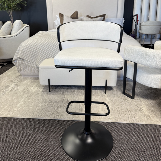 Kazan Adjustable Air-Lift Stool, Set of 2 in Ivory Performance Fabric & Black Metal